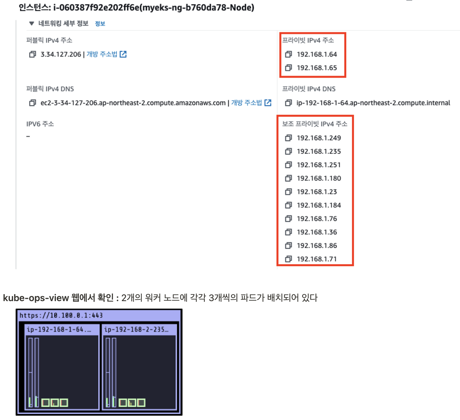 - 특정한 파드(kube-proxy, aws-node)는 호스트(Root)의 IP를 그대로 사용한다