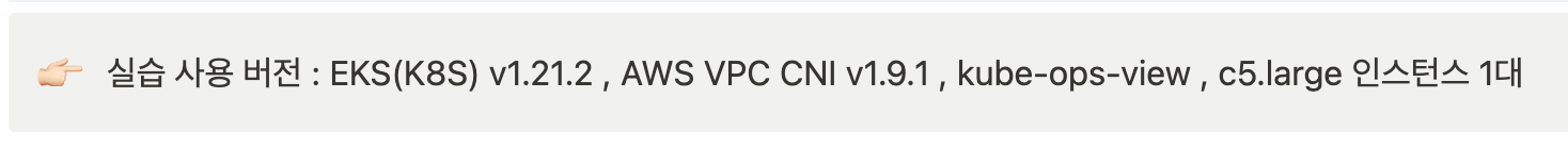 👉🏻 실습 사용 버전 : EKS(K8S) v1.21.2 , AWS VPC CNI v1.7.5 , kube-ops-view